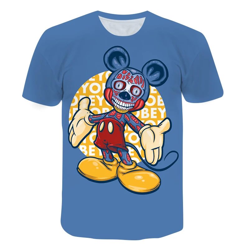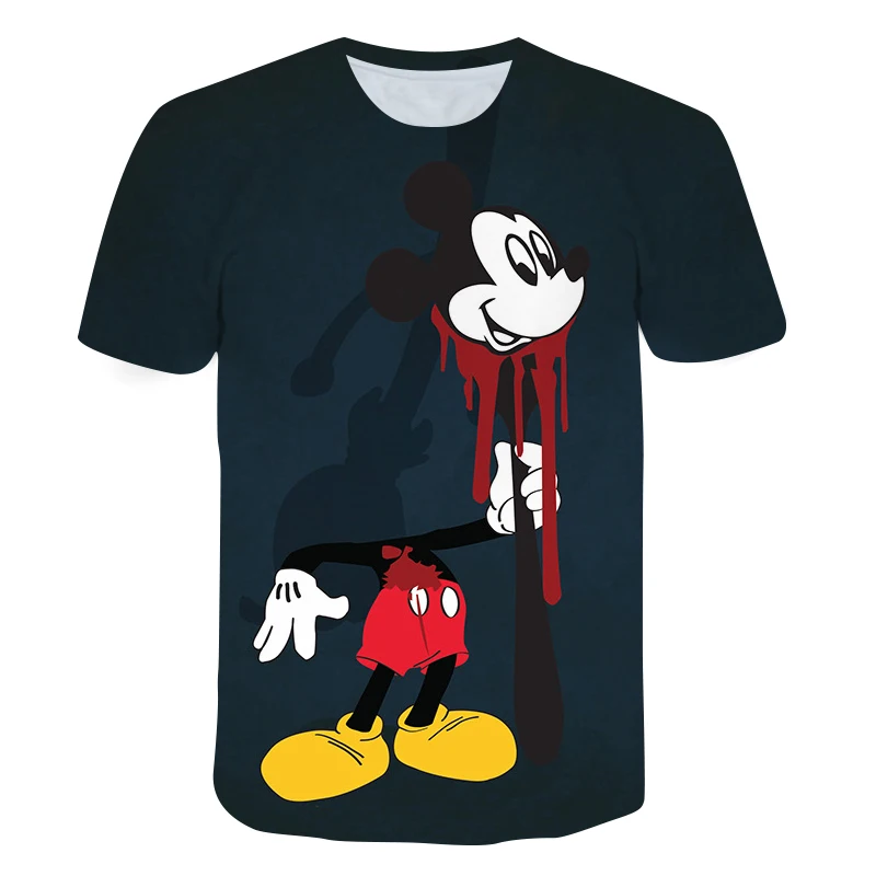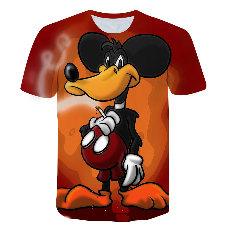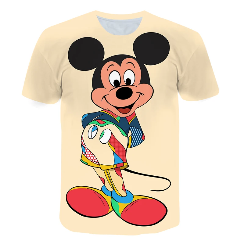 Летняя новая детская футболка детская рубашка с цифровым принтом Микки Мауса топы с круглым вырезом и коротким рукавом Уличная мода одежда в стиле хип-хоп
