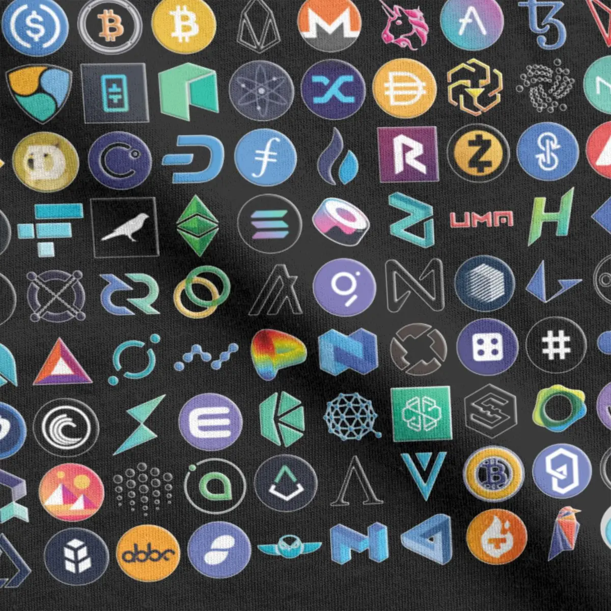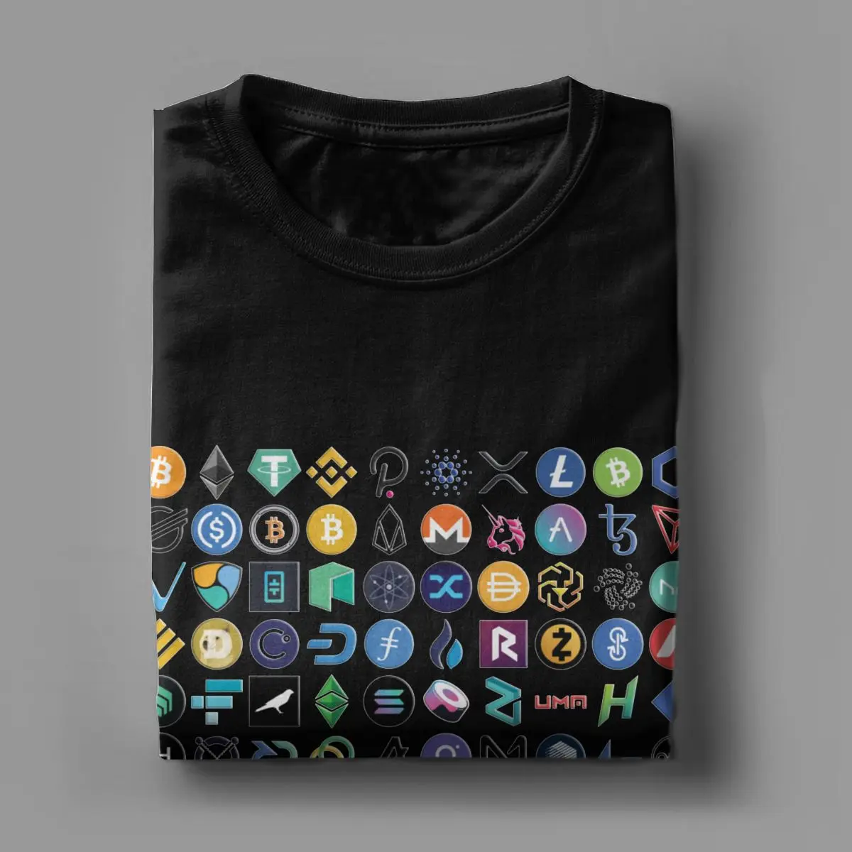 Футболка мужская с принтом криптовалюты, хлопковая Винтажная с коротким рукавом, с принтом биткоина литейна этериума, 3d-логотипы криптовалюты