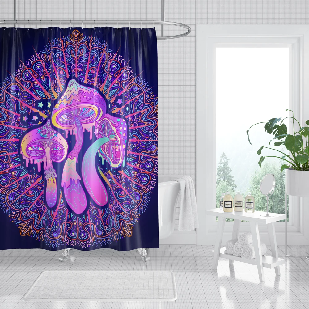 Занавеска для душа в богемном стиле, водонепроницаемая тканевая штора с рисунком цветных грибов, совы, Современное украшение для дома, экраны для ванной с крючками