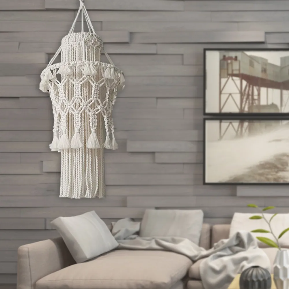Абажур ручной вязки в богемном стиле, Подвесная лампа-макраме, укра...