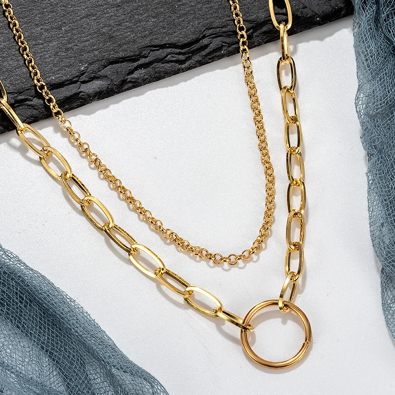 Женское Двухслойное ожерелье, толстая металлическая цепочка в стиле...