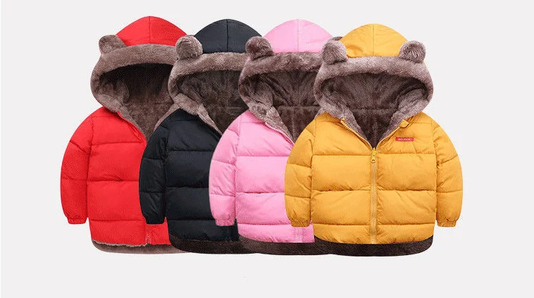 Куртка для мальчиков и девочек, с хлопковой подкладкой, с капюшоном, двусторонняя, Зимняя