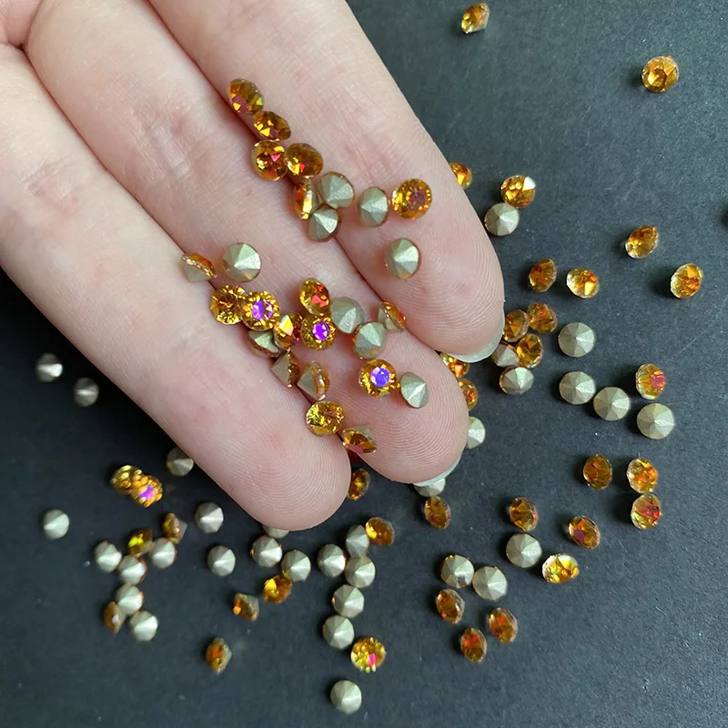 Цвет: все размерыФорма: 1088 ChatonМатериал: кристаллИспользуется: Нейл-арт, одежда, обувь, сумки...Размер: 5,3 мм