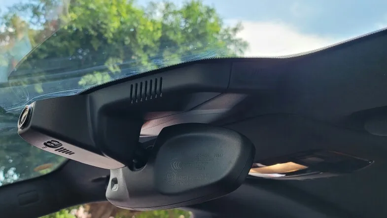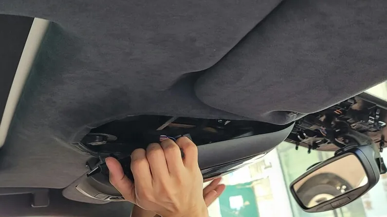The advantage of this camera is that it can take power directly from the room lamp, and there is no need to wire the cigarette lighter or the fuse box. Remove the bottom box behind the reflector of the original car, connect the pair of cables, buckle the shell, and then you can replace this recorder with a good match. The viewing angle of the screen is good.