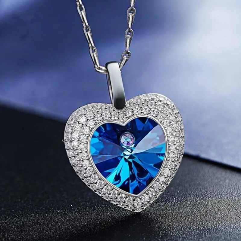 Модное романтическое ожерелье с синим кристаллом и подвеской в виде сердца океана, женское очарование