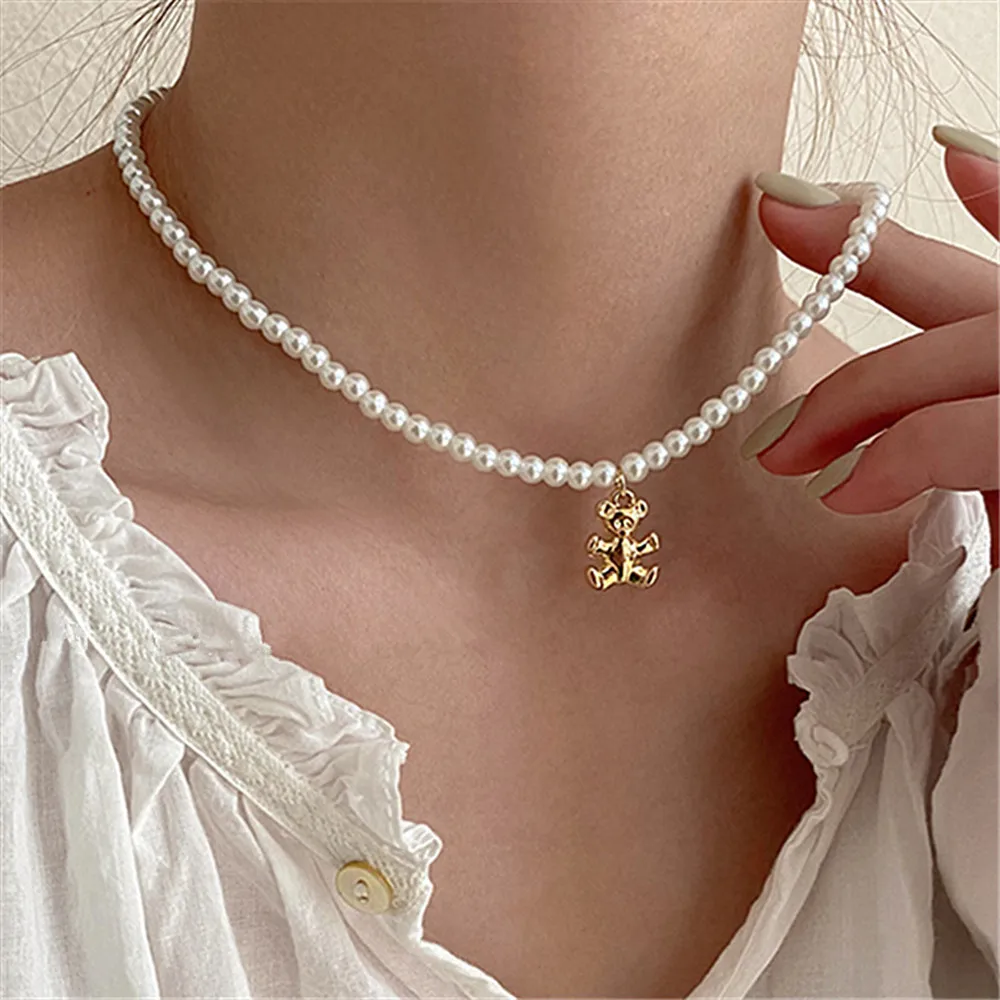 Корейское белое ожерелье с имитацией жемчуга для женщин, винтажное ...