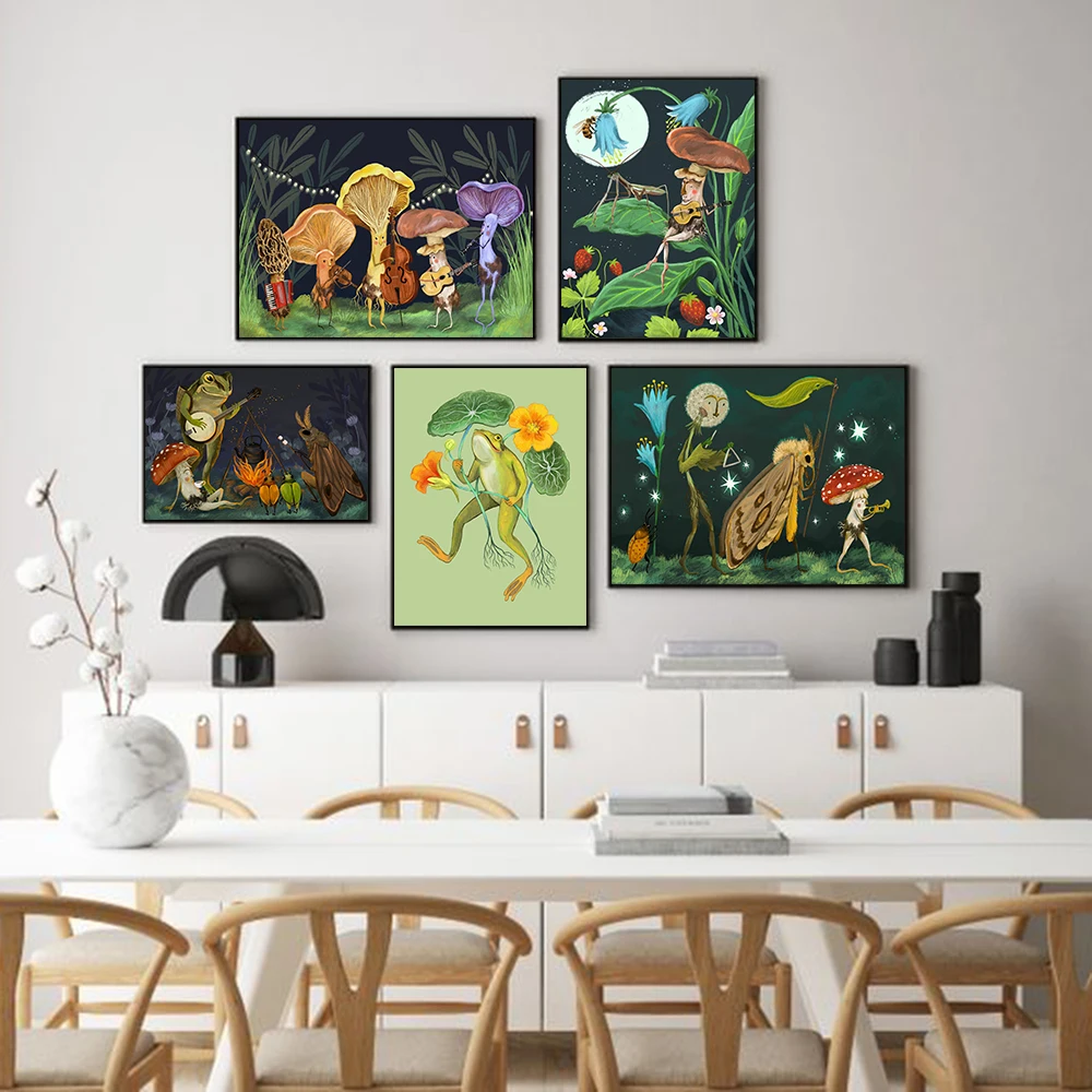 Постер Moonlit в виде гриба для концерта, рисунок, интересный холст, винтажная лягушка, фотография гостиной, домашний декор