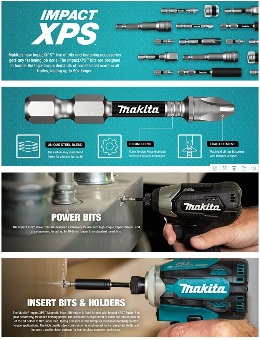 Ударная насадка для шуруповерта Makita XPS, высокопрочная, 90 раз