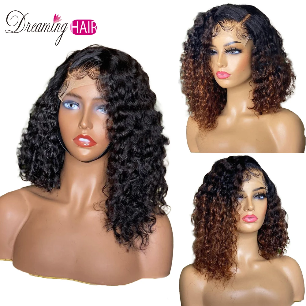 Кудрявые парики боб с эффектом деграде 4x4, парики из натуральных волос на сетке для чернокожих женщин, 180% кудрявые бразильские натуральные парики с эффектом деграде