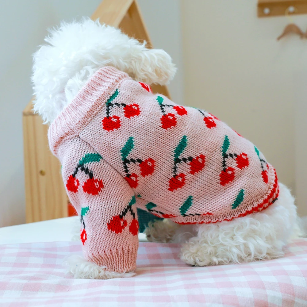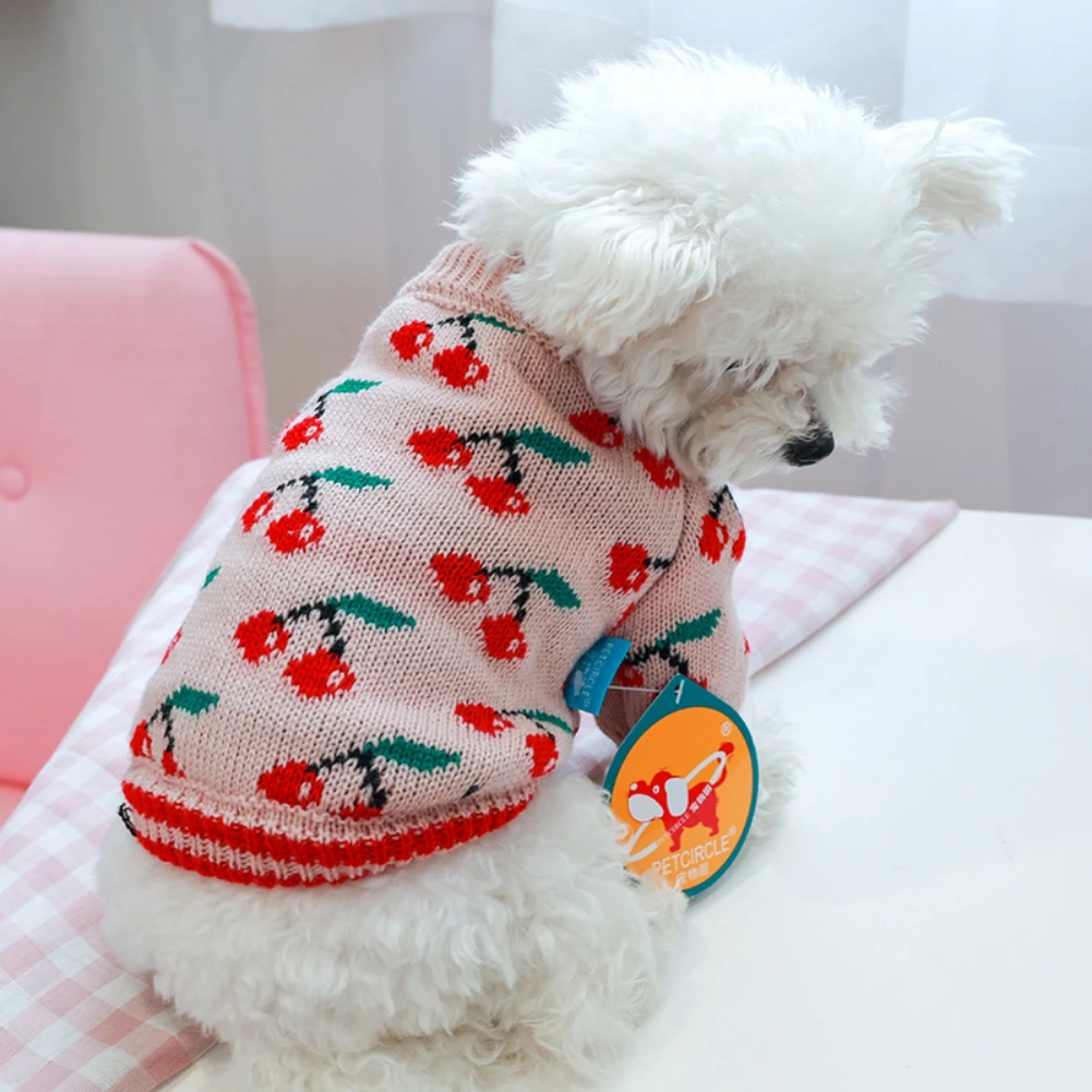 Свитер для собак, зимний, теплый, с вишневым принтом, для щенков, Такс, чихуахуа, корги, одежда для домашних животных, собак