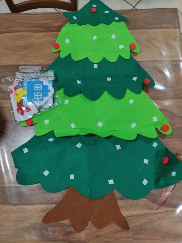 Очень хорошая елка, ребенок может сам повесить свои украшения и сделать свою собственную елку, но она остается хрупкой, ее нельзя играть, чтобы удалить и вернуть украшения, потому что они очень быстро ломаются. Смотрите с швеей, чтобы сшить липучки, может быть, это было бы более солидно! Огни не такие длинные, как на картинке, которая хочет заставить нас поверить, что они выглядят как наконечник до нижней части листа, просто делая 3 zigzag, а кабель довольно короткий, а затем до корпуса батареи. Продается в магазинах lafoir'fouille за 10 €, так что очень рад, что взял его на Aliexpress!