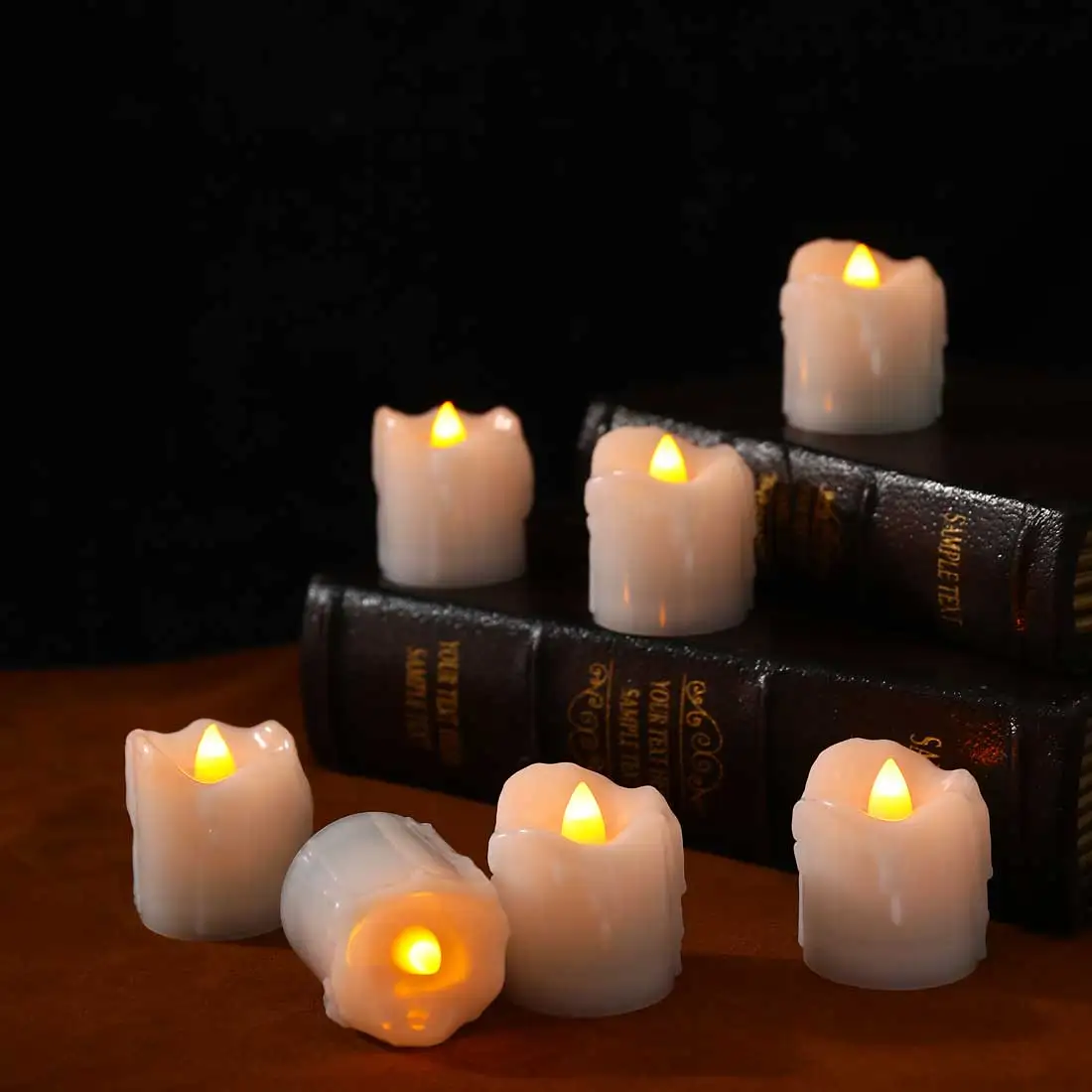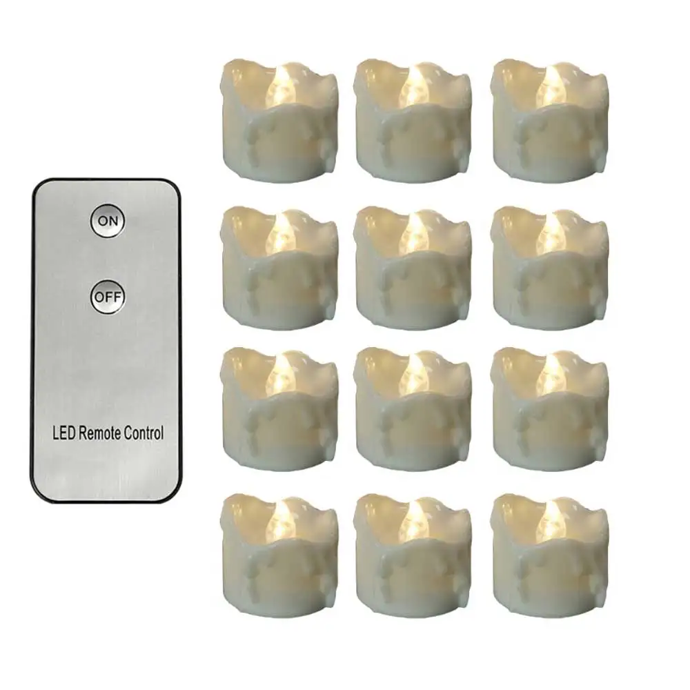 Упаковка из 12 беспламенных декоративных светодиодных свечей с дистанционным управлением, работающих от батарейки, Электронная свеча для Хэллоуина