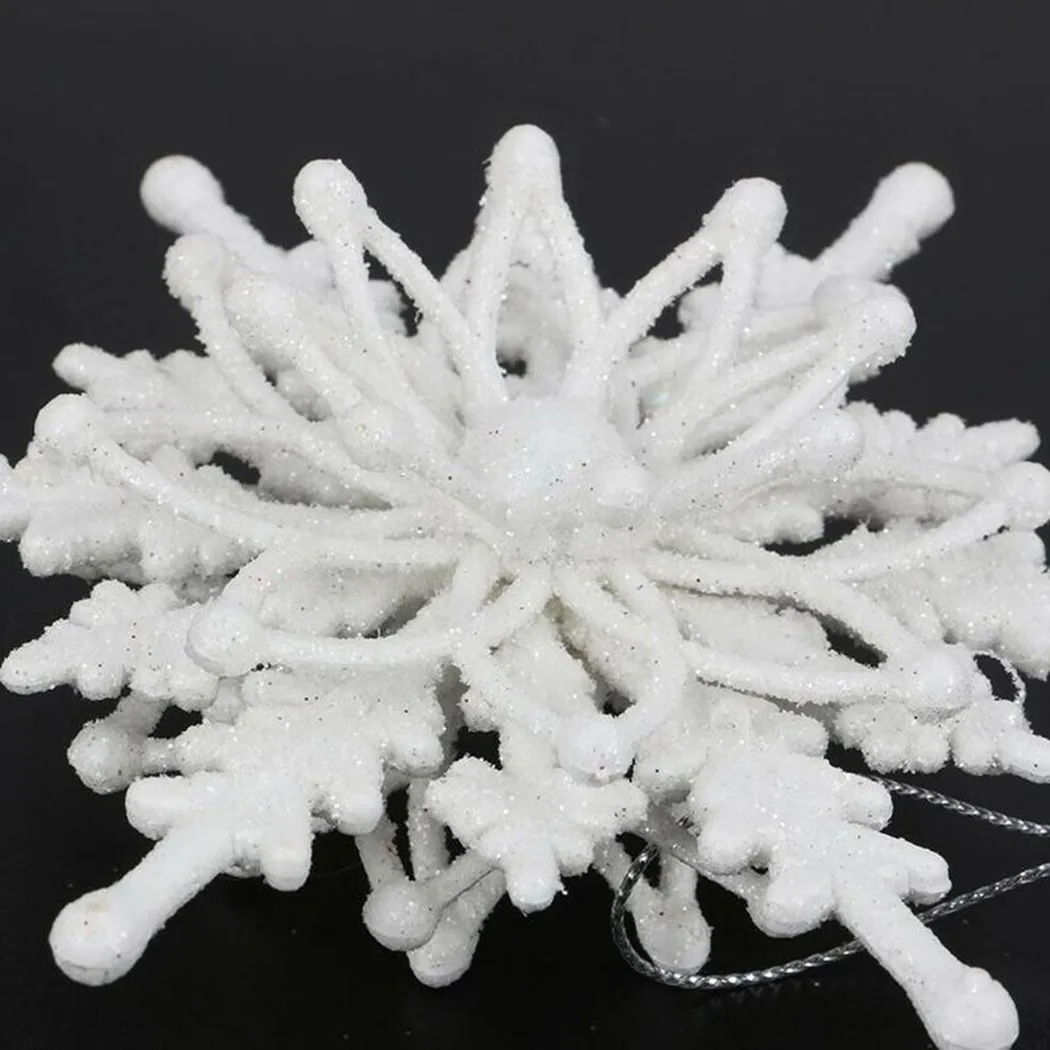 Искусственные 3D снежинки 12 см, Рождественский Декор, Пластиковые блестящие Рождественские Подвески для дома, свадьбы, дня рождения, Рождественский Декор