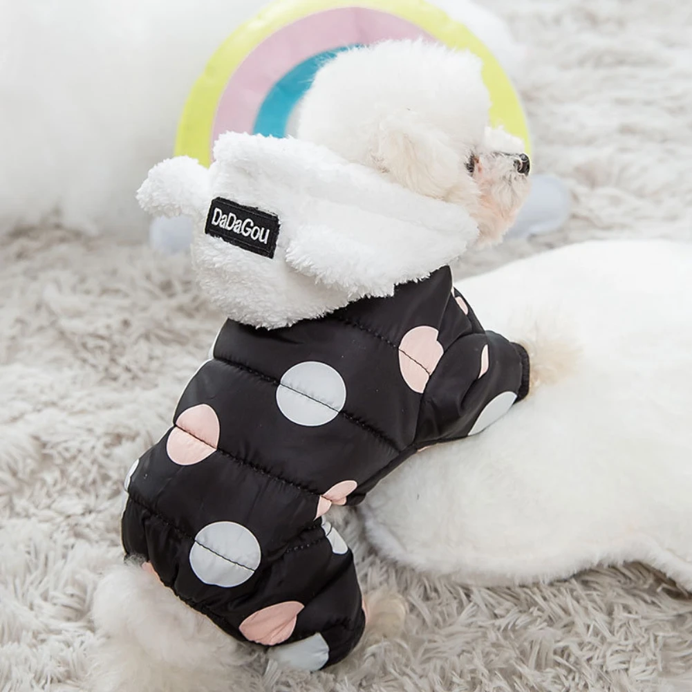Плюшевое теплое хлопковое пальто с четырьмя ногами, водонепроницаемое пальто для домашних питомцев, одежда для собак, зимнее пальто, куртка для собак, кошек, женская одежда