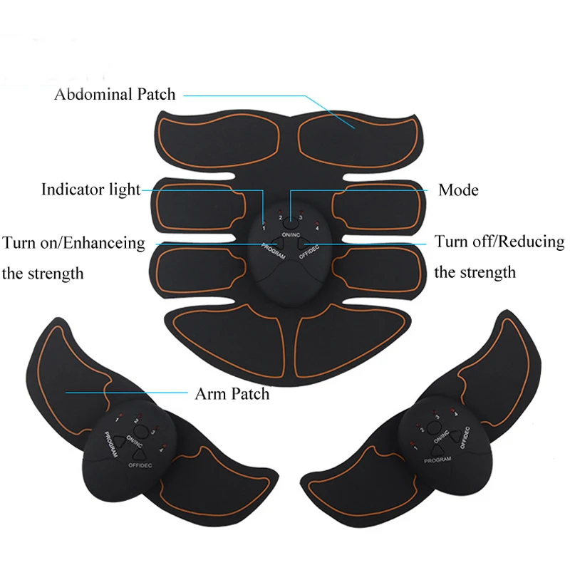 EMS для занятий фитнесом ABS включает: 1 шт. Коврик для тренировки живота; 2 шт. подушечки для рук; 3 шт. контроллер; 1 шт. Обучение английскому языку; 1 шт. Розничная коробка