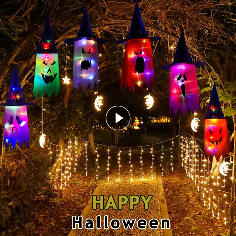 Подвесные светящиеся светодиодные фонари для Хэллоуина, украшение сделай сам, светящаяся шляпа ведьмы, реквизит для вечеринки в стиле аллоуина, дома, улицы, двора, дерева, 1 шт.