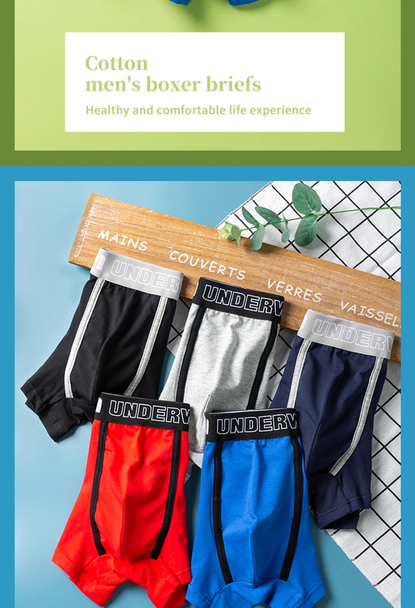 Модные мужские боксеры, шорты, хлопковое дышащее нижнее белье, мужс...