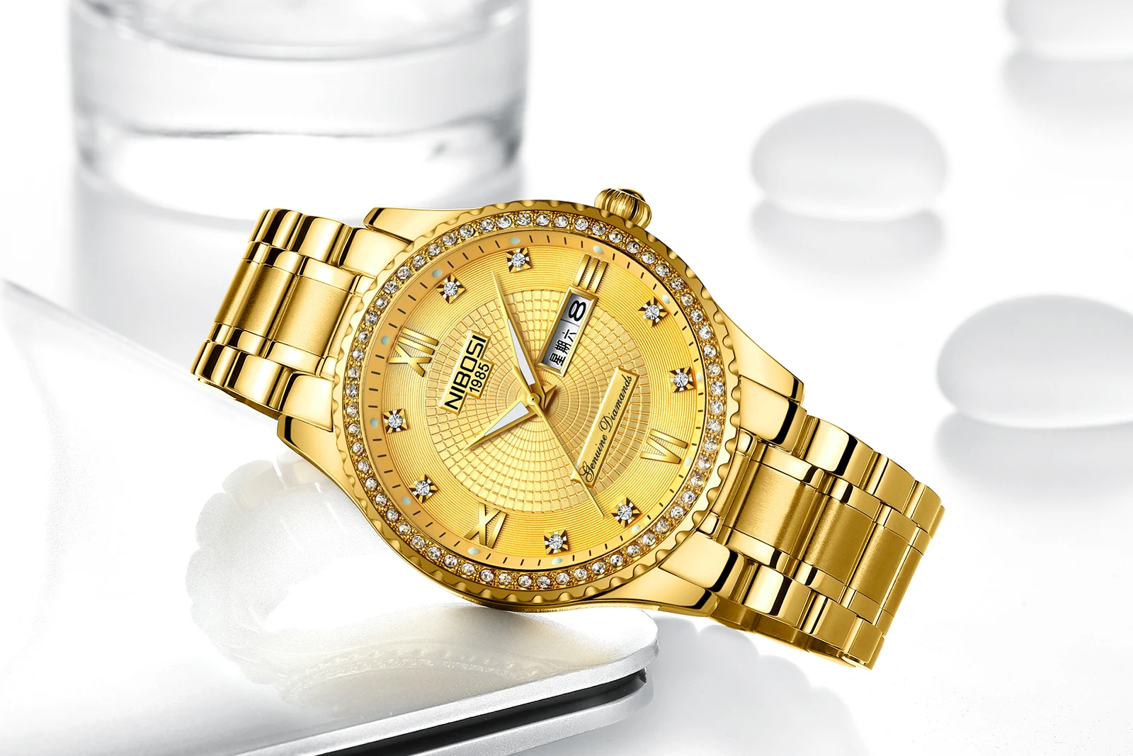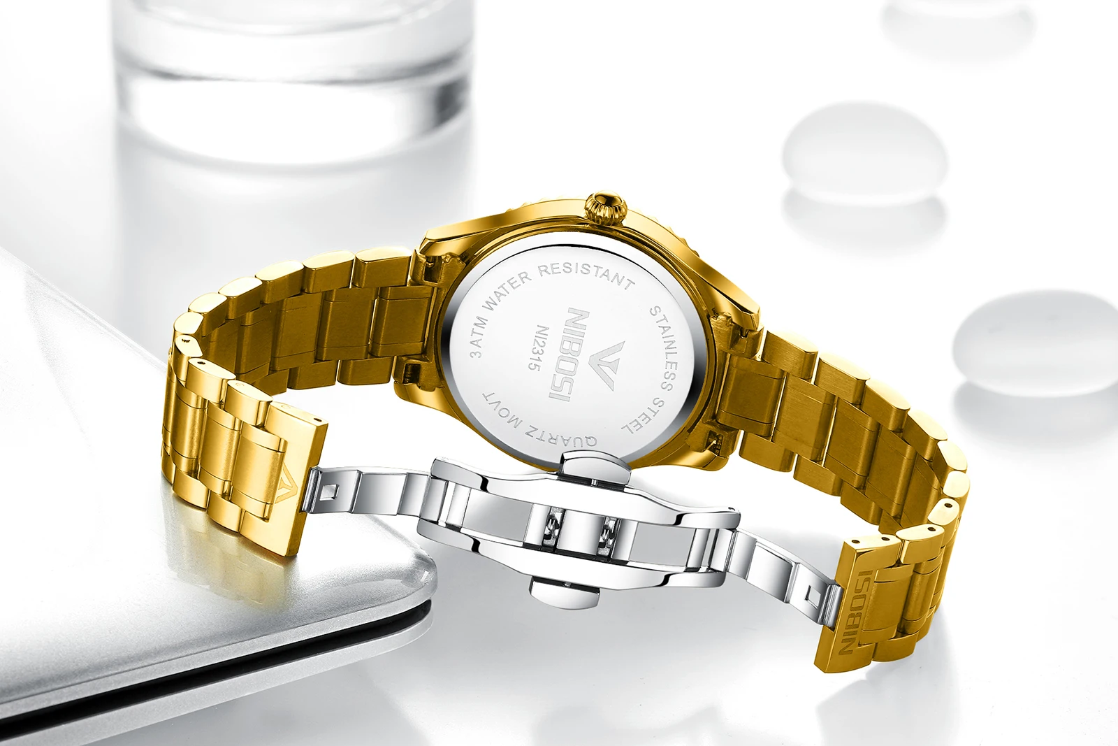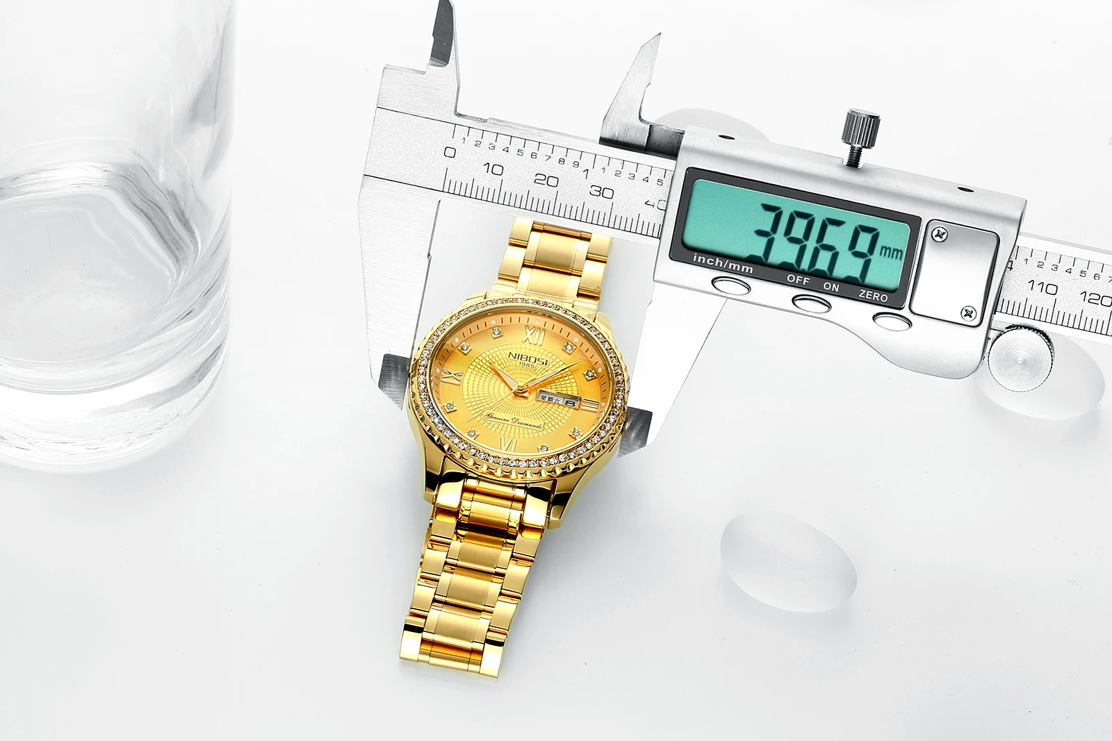 Часы наручные NIBOSI парные, брендовые Роскошные Кварцевые золотист...