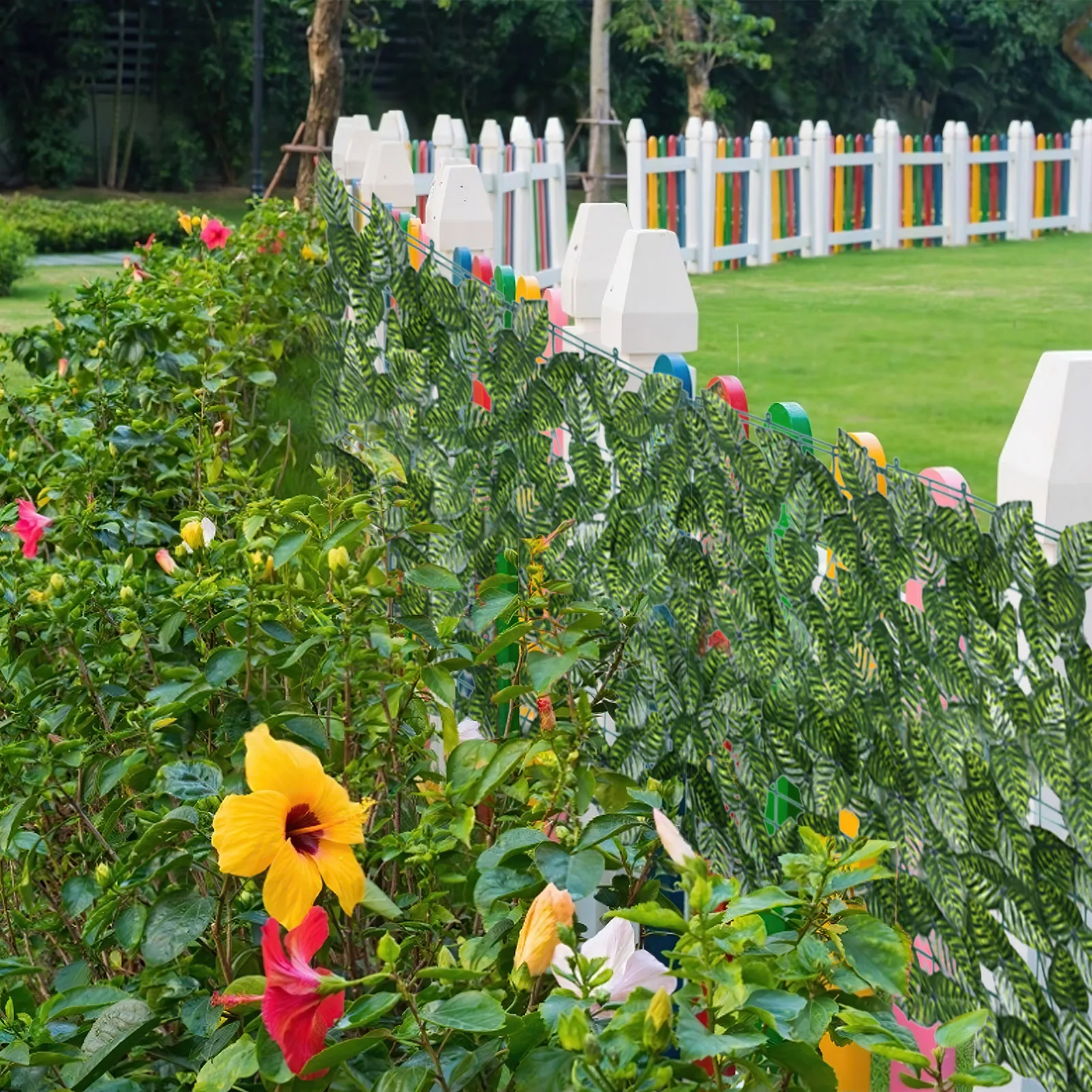 Садовый забор искусственный с изображением зеленых листьев и конфид...