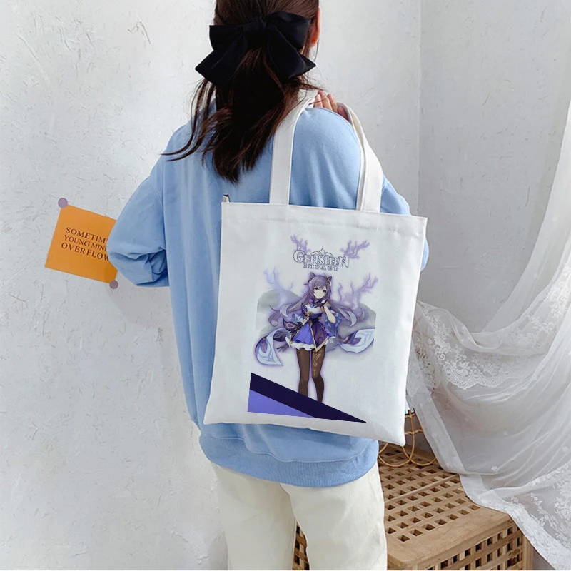 Холщовая Сумка шоппер Genshin Game Kawaii аниме сумки для шопинга с...