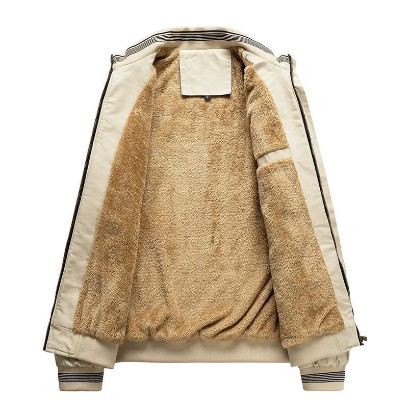 Мужская зимняя флисовая куртка, повседневная плотная теплая парка, Мужская облегающая ветровка в деловую полоску, однотонная простая куртка для мужчин