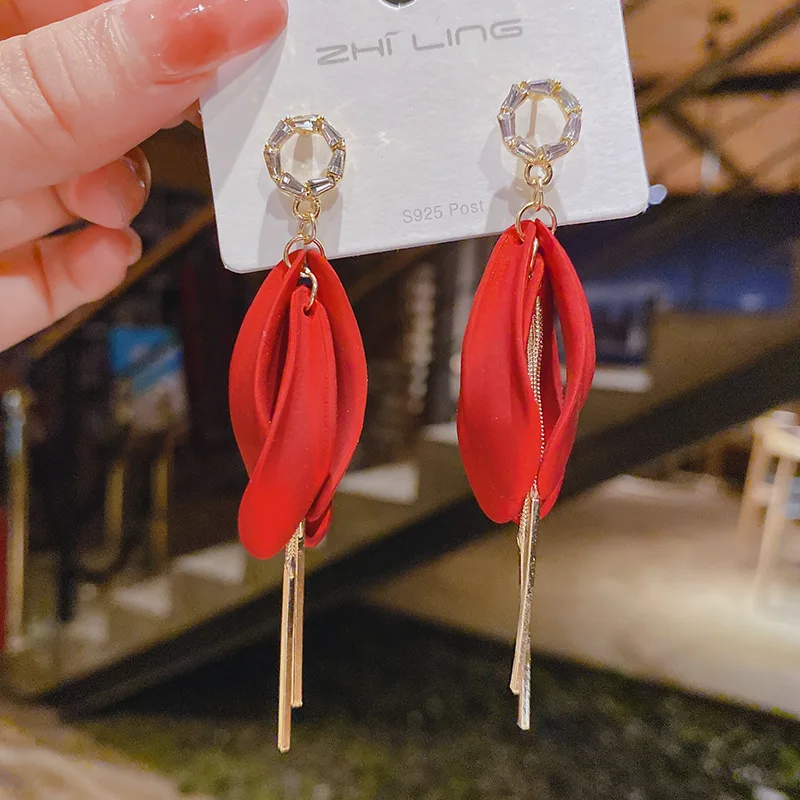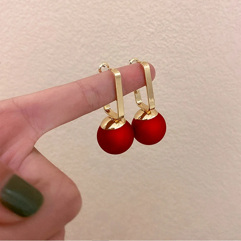 Женские серьги-подвески с красным жемчугом, в Корейском стиле