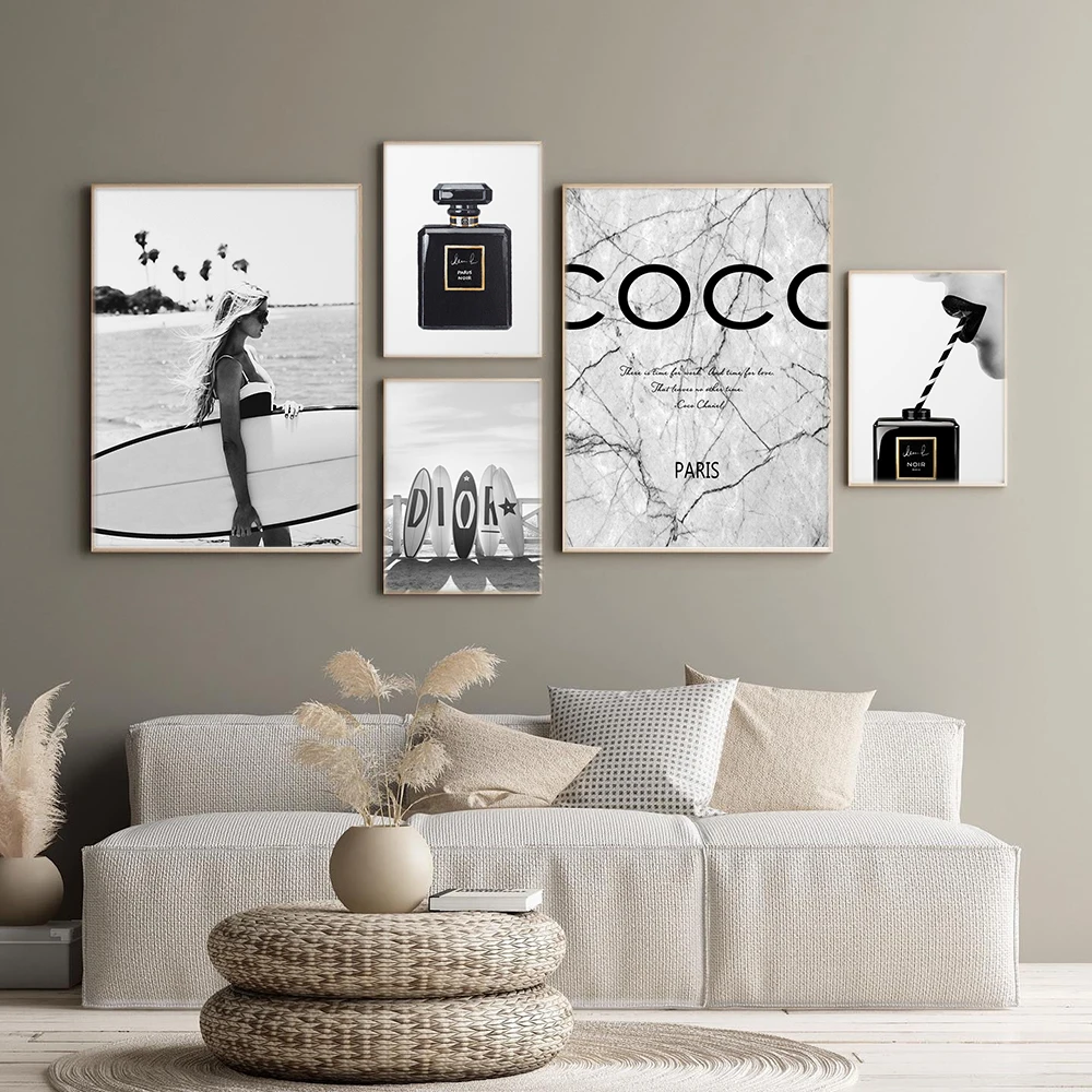 Модный плакат с парижским флаконом духов, Картина на холсте, искусс...