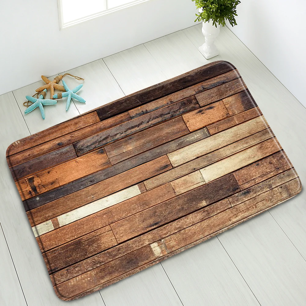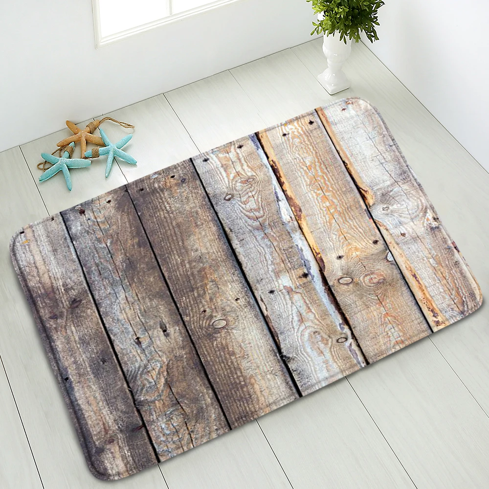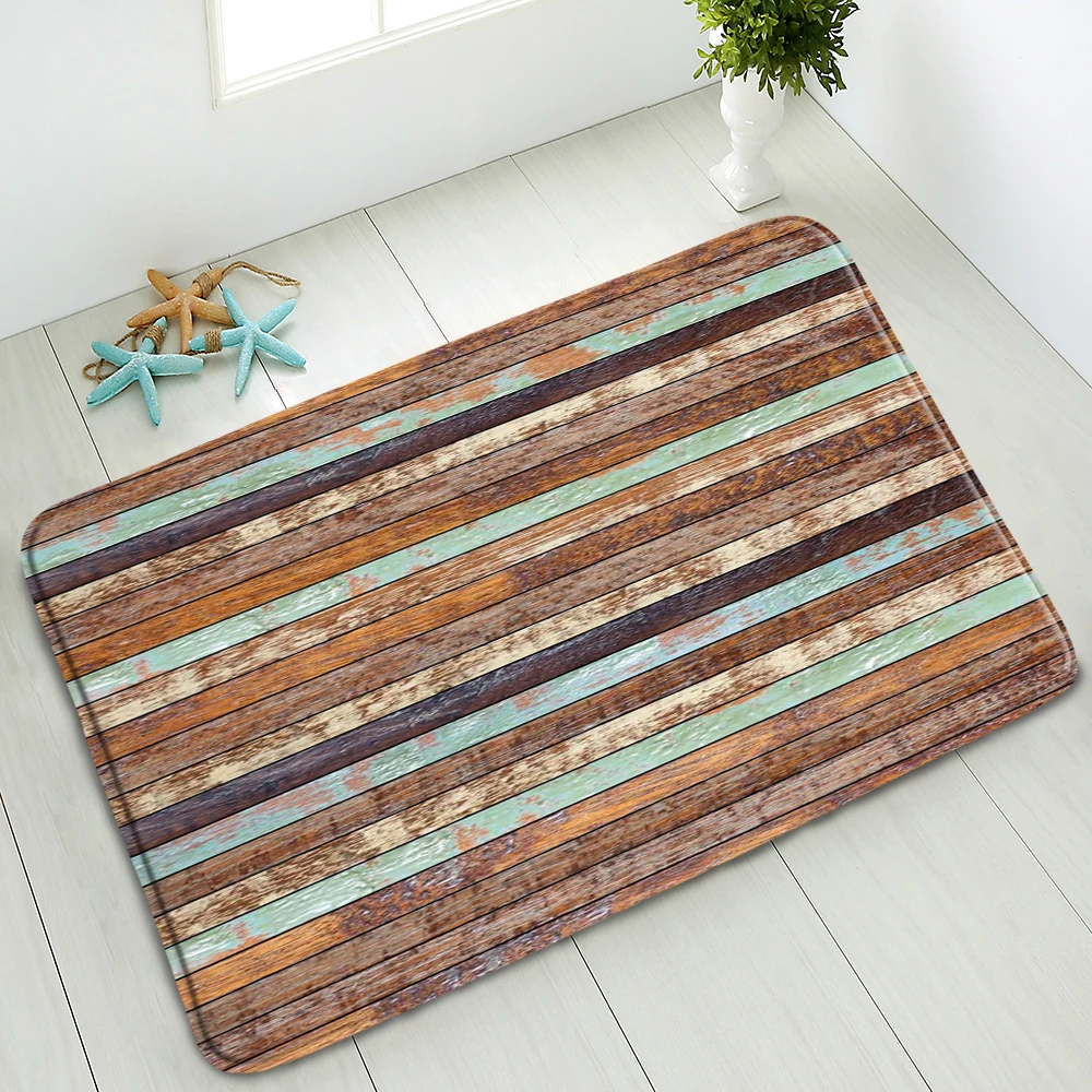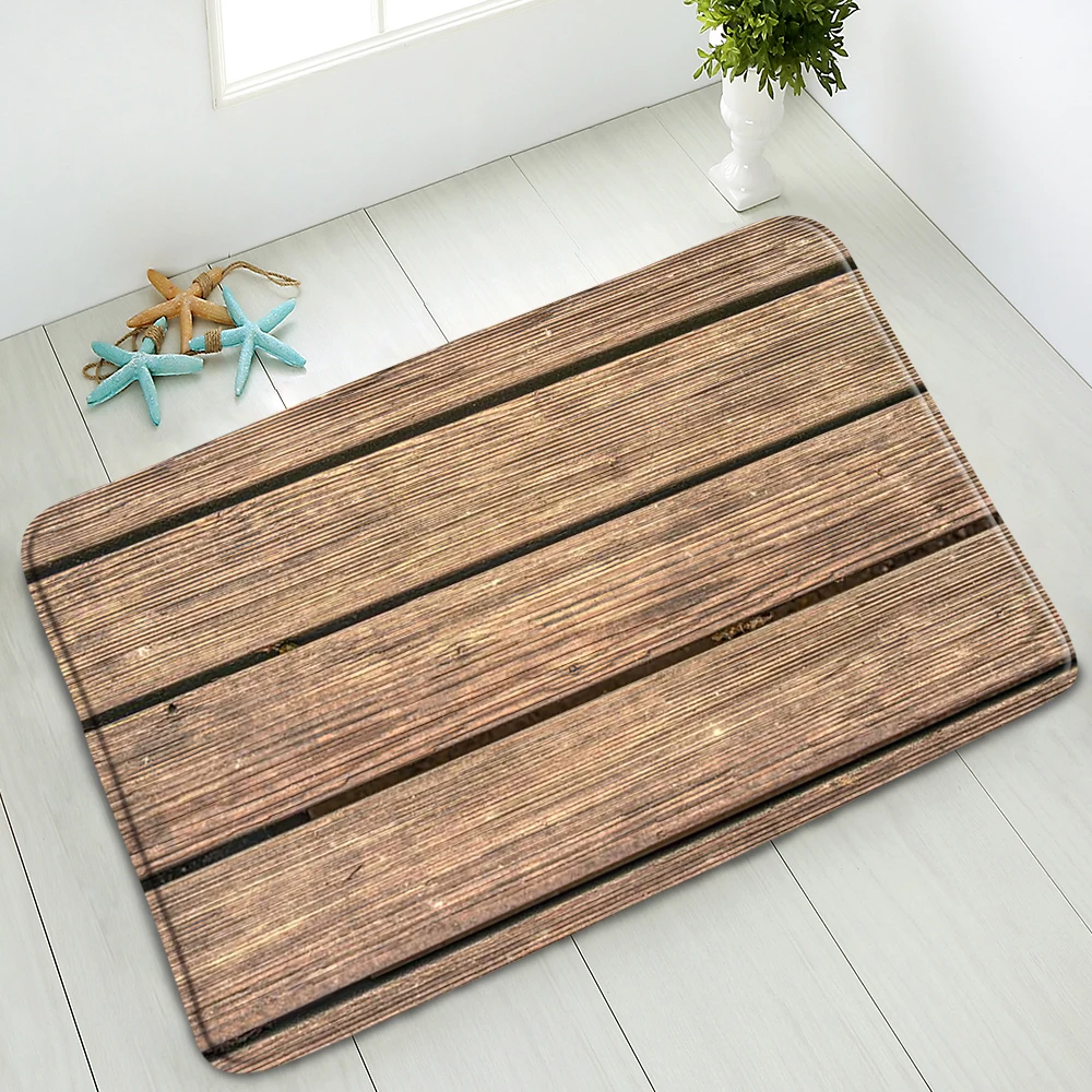 Коврик для ванной в стиле ретро, деревянная доска, полосатая текстура старого коричневого цвета, нескользящий коврик, фланелевый декор для пола, коврики для ванной, кухни, входа