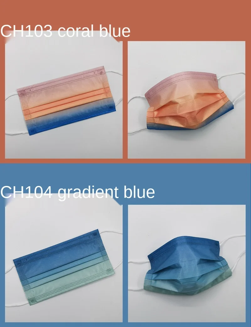 Одноразовые маски градиентных цветов, цветные яркие радужные маски для взрослых из спанлейса для лица, трехслойные бриллиантовые дышащие маски