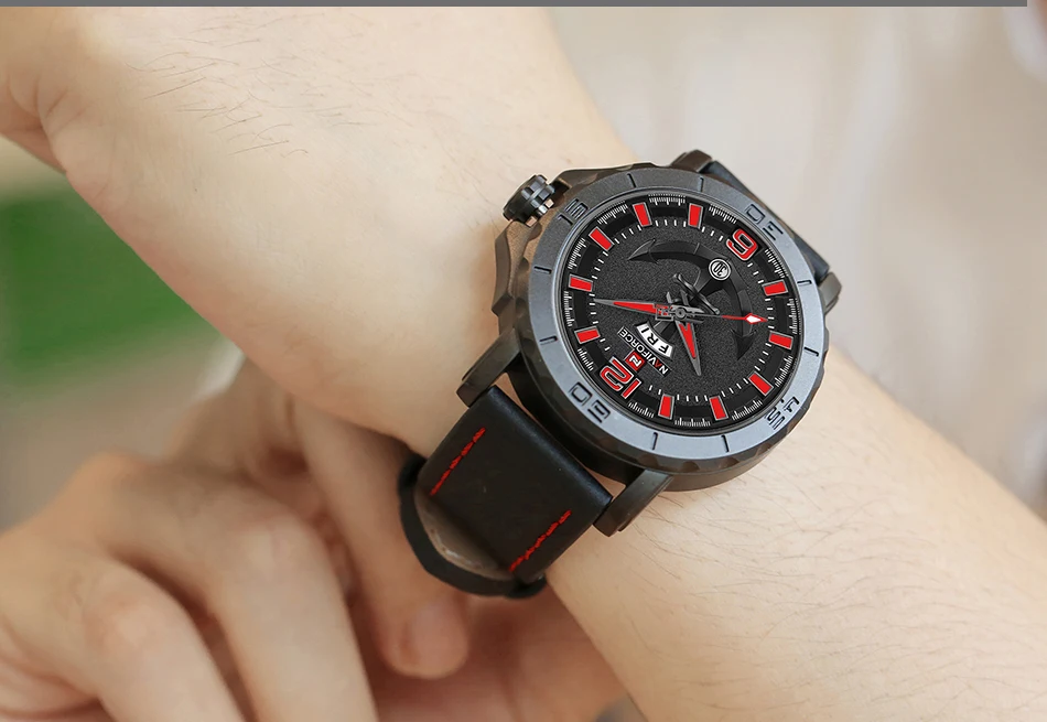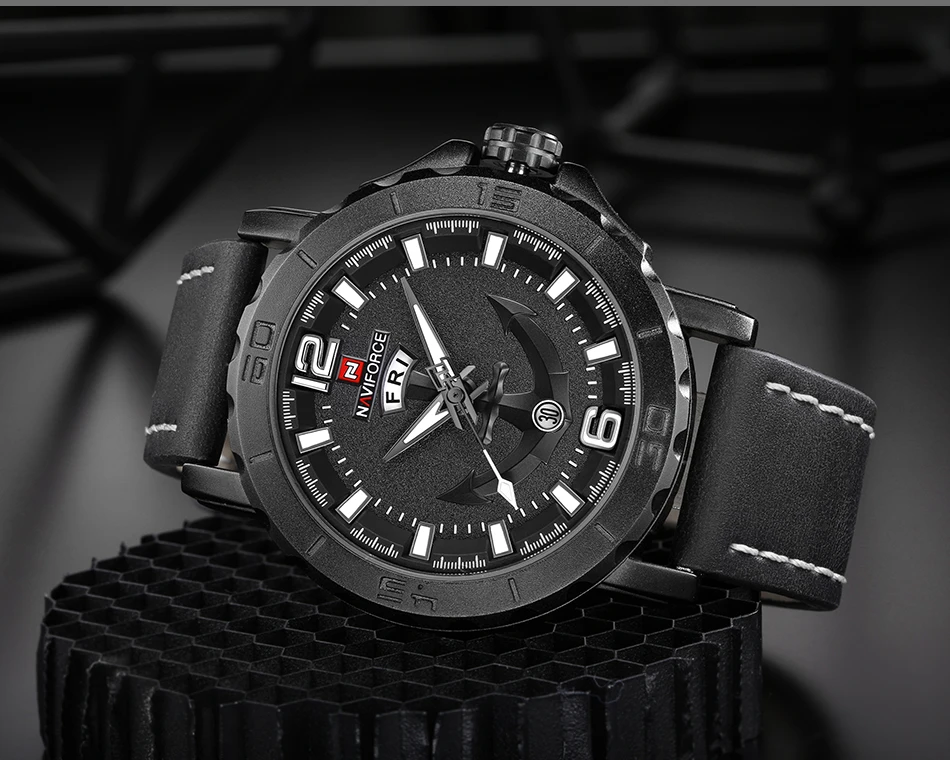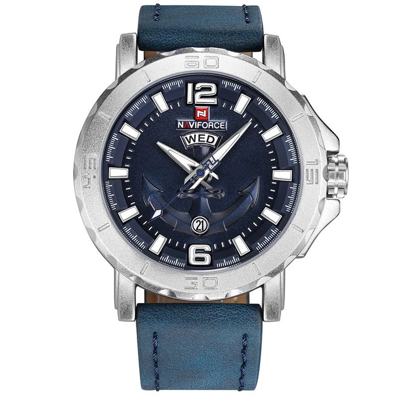Часы наручные NAVIFORCE Мужские кварцевые, роскошные Брендовые спортивные полностью водонепроницаемые с кожаным ремешком