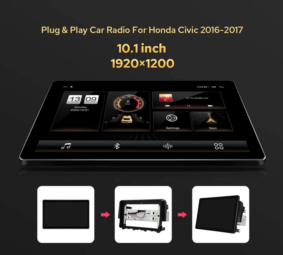 Магнитола Joying, 1 din, Android, автомобильная стереосистема, центральный мультимедийный модуль 10,1 дюйма, 1920*1200, 4G, som, Автомобильный GPS для Honda Civic 2016-2017
