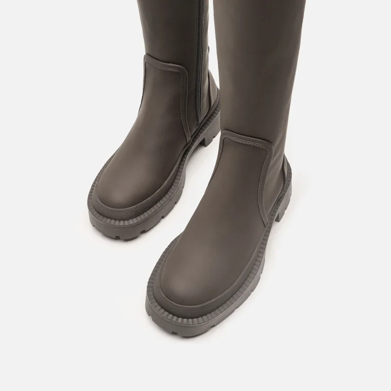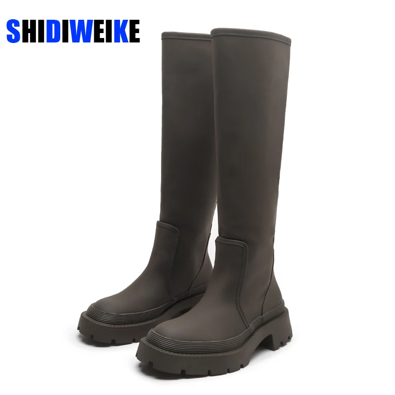 Женские высокие сапоги до колена, зимние теплые сапоги на квадратном каблуке, армейский зеленый, бежевый цвет, AD592, 2021