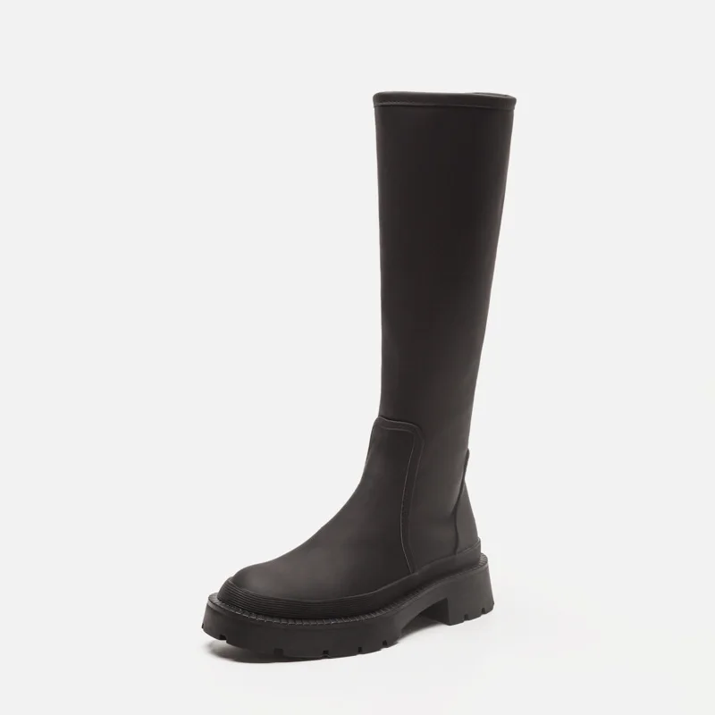 Ботинки женские кожаные, до середины икры, на платформе, черные, в ...