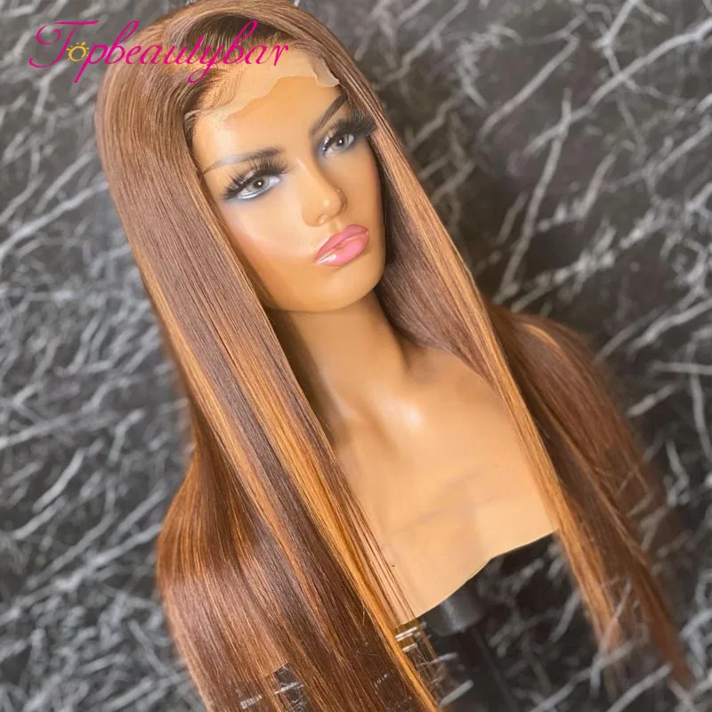 Омбре коричневый цвет 13x 4 кружева передние человеческие волосы парики Волнистые прямые Кружева передние парики для женщин бразильские Реми кружевные парики