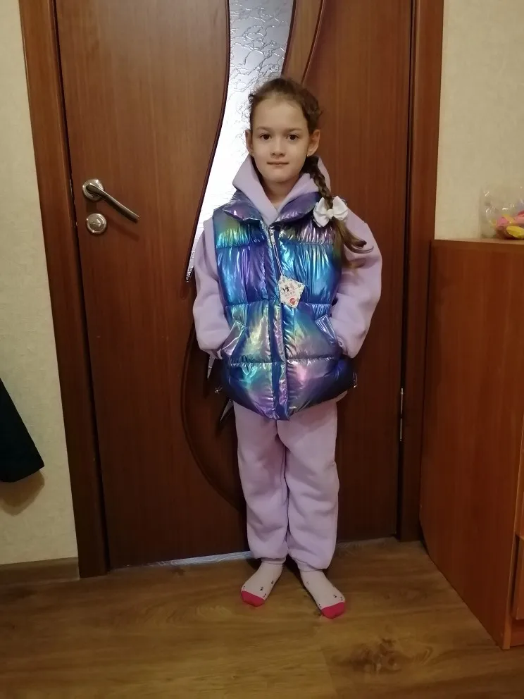 отличная жилетка, 120 на дочку 110 рост не много с запасом.