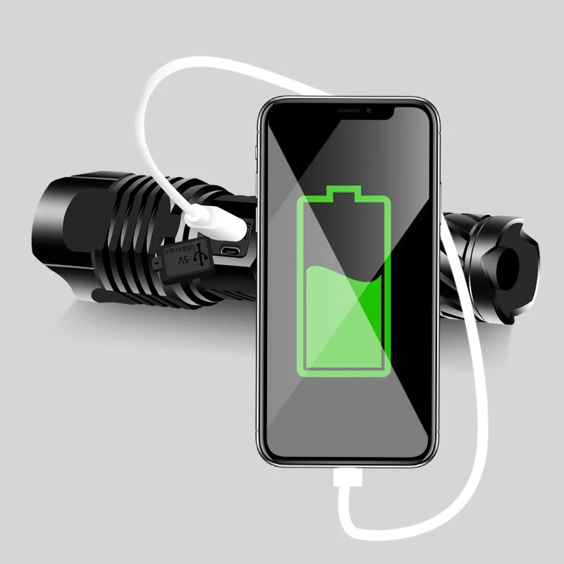 Яркая светодиодсветильник фонарик XHP200 с зарядкой от USB, аккумуляторная батарея, фонарик из алюминия, масштабируемый водонепроницаемый фонарик для кемпинга 26650