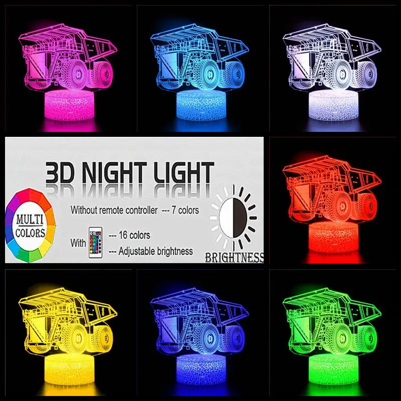 3d-ночник для бульдозера, грузовика, экскаватора, автомобиля, трактора, автомобиля, светодиодный ночник, игрушка, украшение для игры, светильник для детей, рождественский подарок, светильник