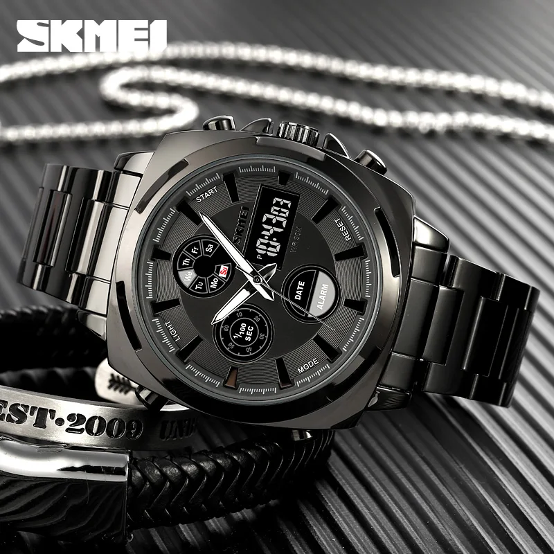 Мужские модные многофункциональные часы Skmei студенческие механические водонепроницаемые двойной дисплей светодиодные светящиеся электронные часы 1673