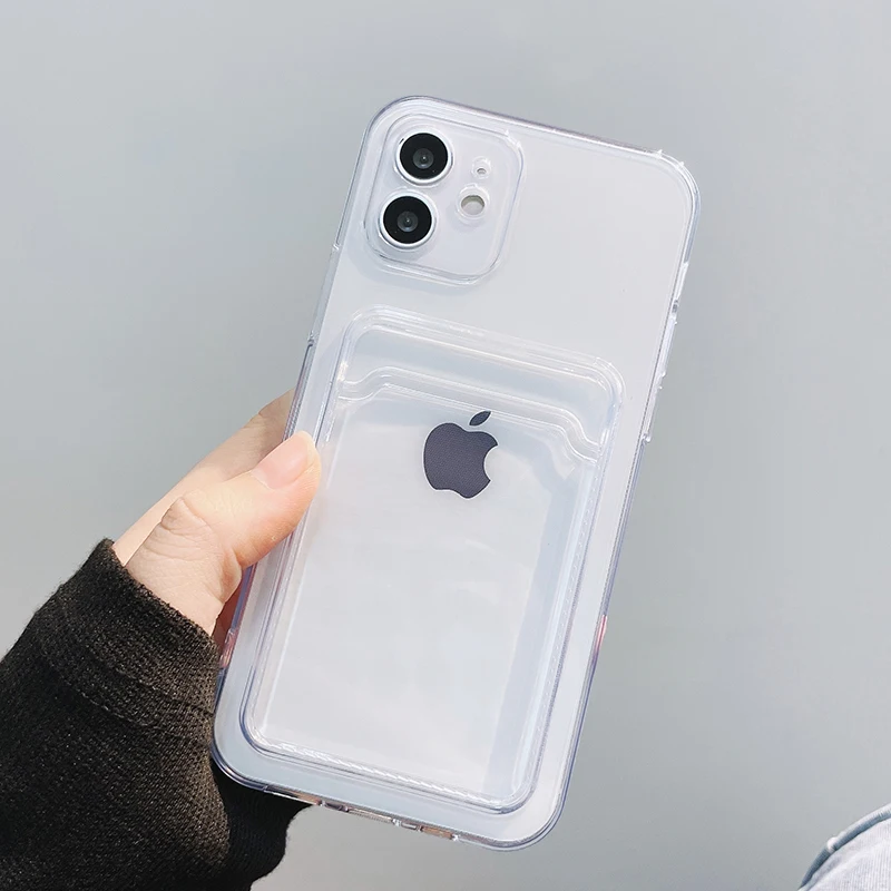 Прозрачный чехол-кошелек с отделением для карт для iPhone 11 12 13 ...