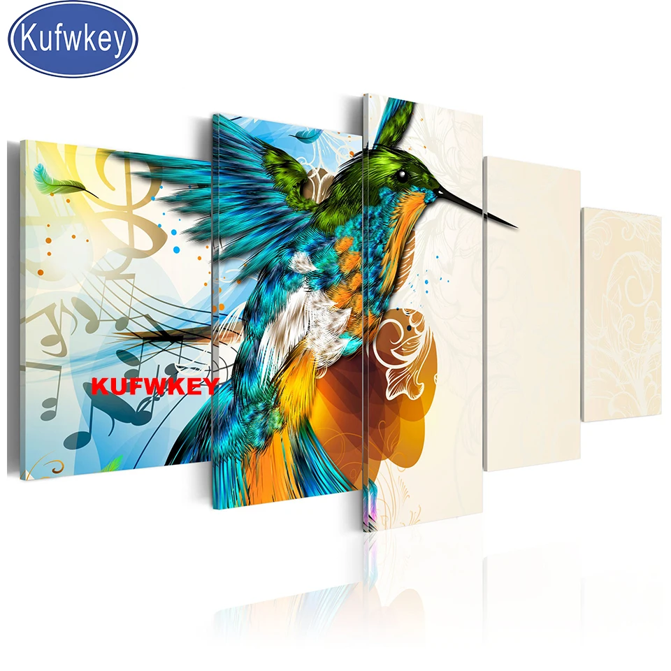5d diy Алмазная картина 5 шт Колибри Алмазная вышивка полный квадрат/Круглый Алмаз Мозаика Кристалл животное Настенный декор