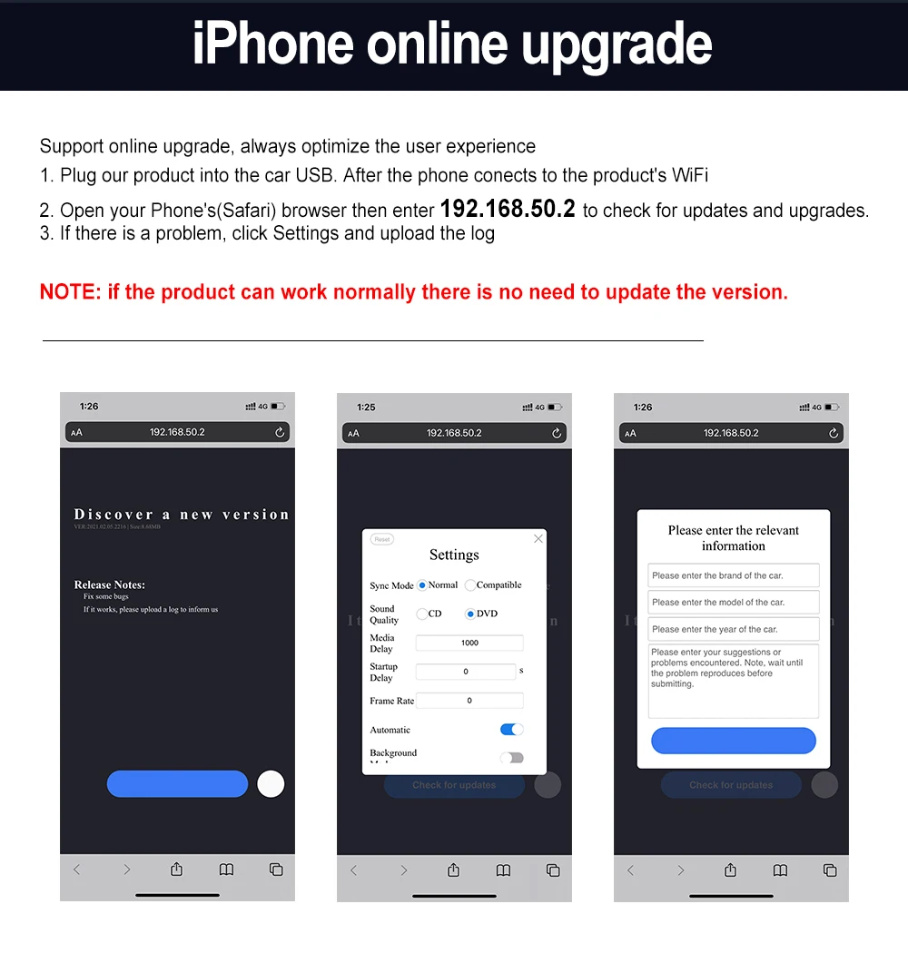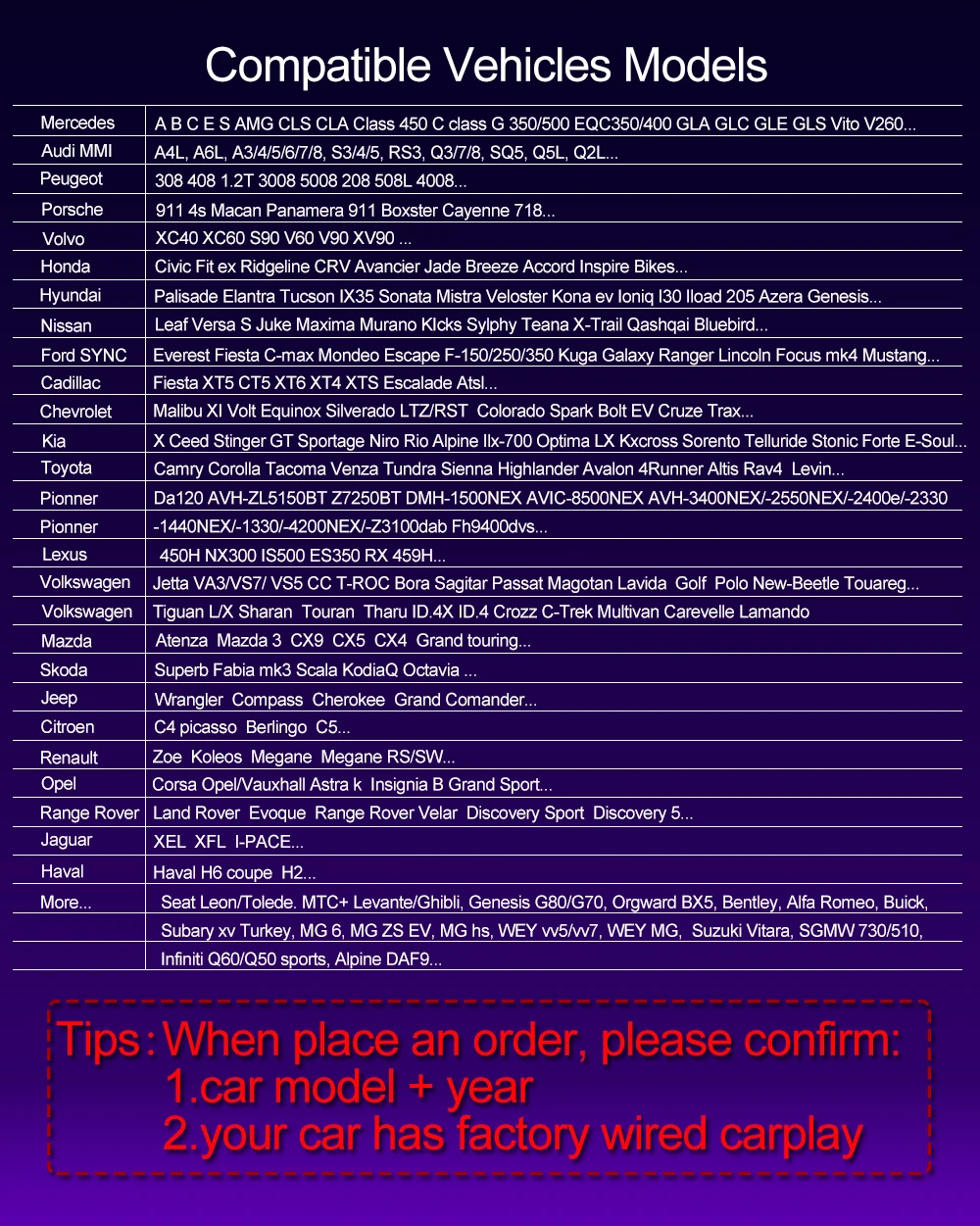 Compatibilitysupport 98% vehicles with OEM wired carplay