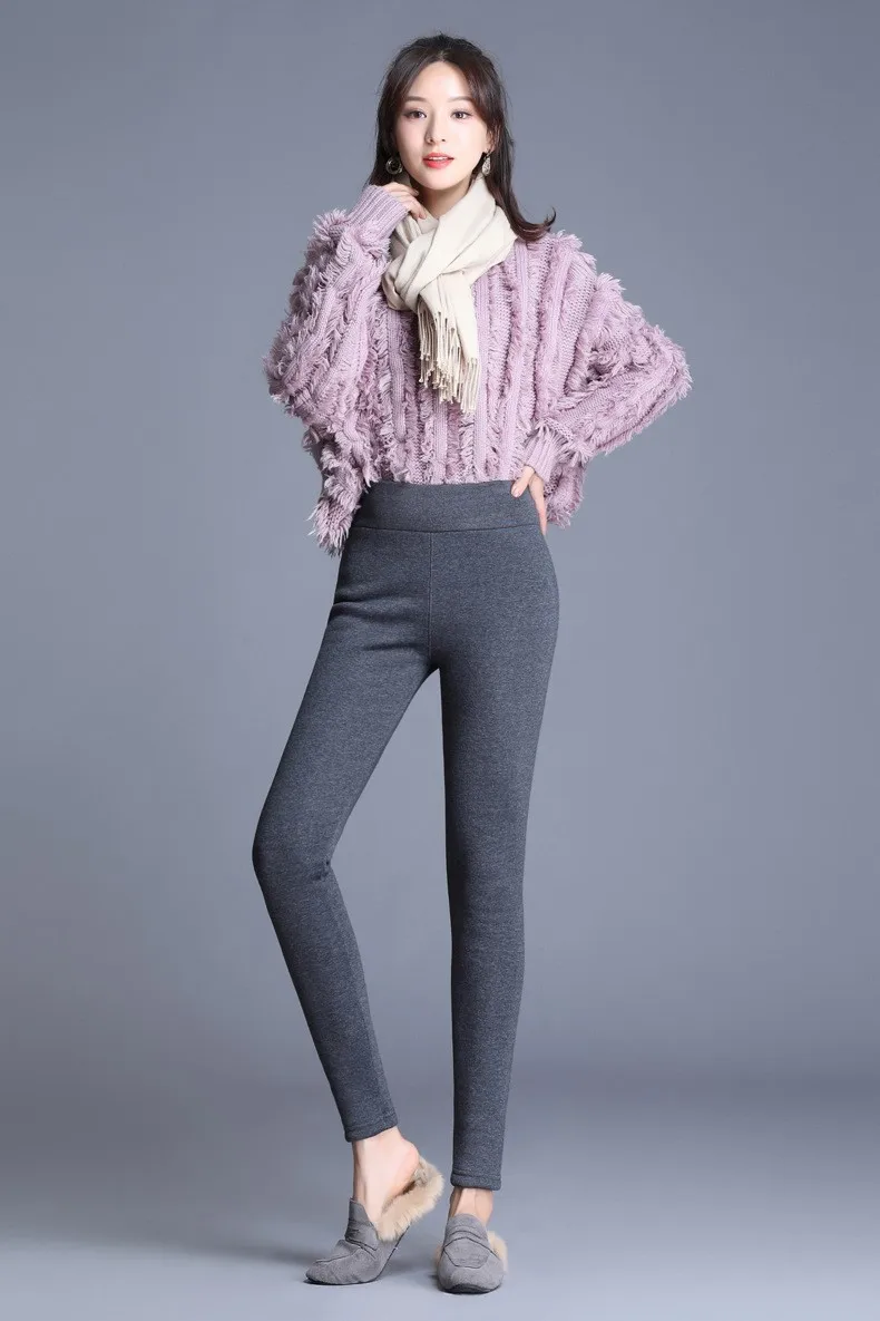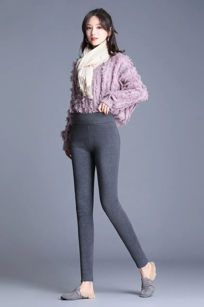 Женские леггинсы WHOUARE с высокой талией, зимние Бархатные Теплые эластичные леггинсы, однотонные леггинсы, удобные теплые штаны