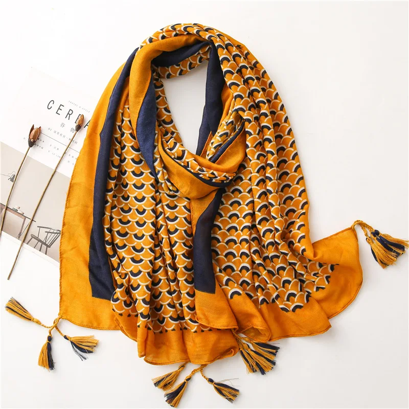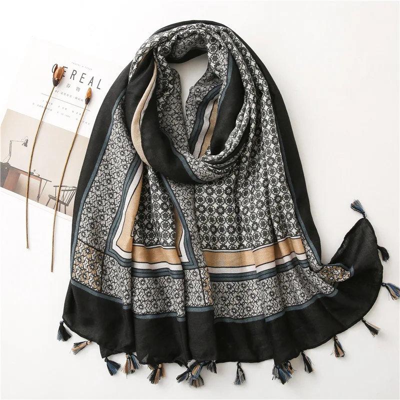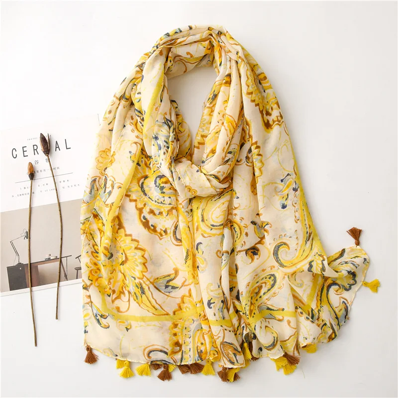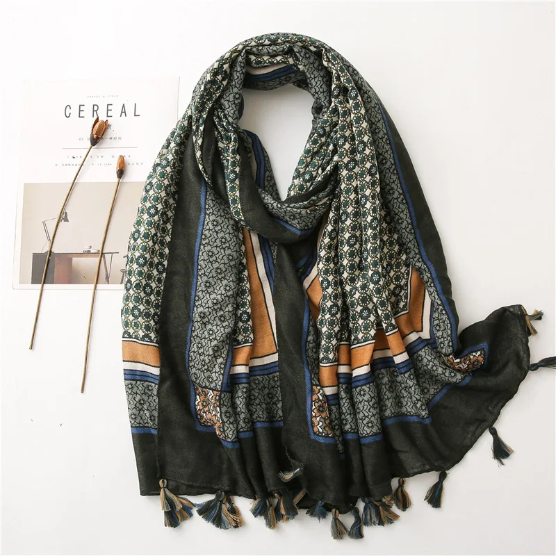 Женская Осенняя шаль из вискозы с кисточками, шаль из пашмины в этн...