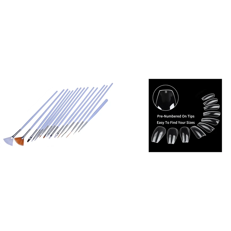 Набор для дизайна ногтей, 20 шт., Раскрашивание лака, инструменты для кистей и 1 набор акриловых накладных кончиков для ногтей, 10 размеров-прозрачный