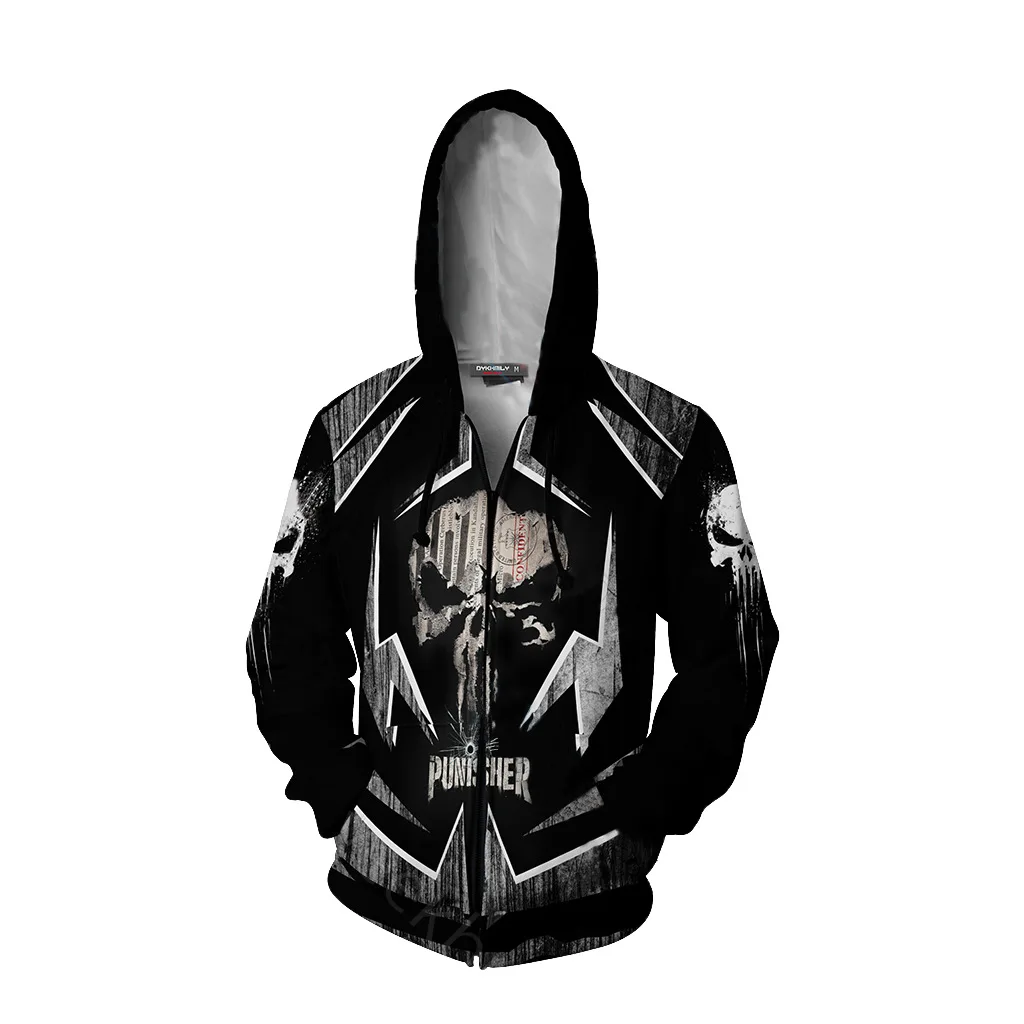 Новинка 2021, свитшоты, мужские костюмы для косплея, повседневная куртка на молнии с 3D-принтом Фрэнка и замка, пуловер