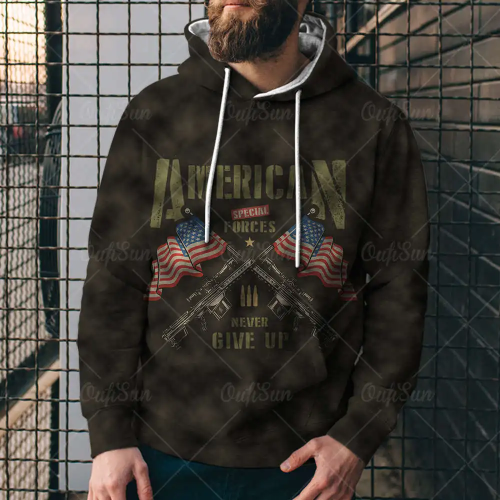 Толстовка флисовая с 3D принтом орла и флагом США, 2021