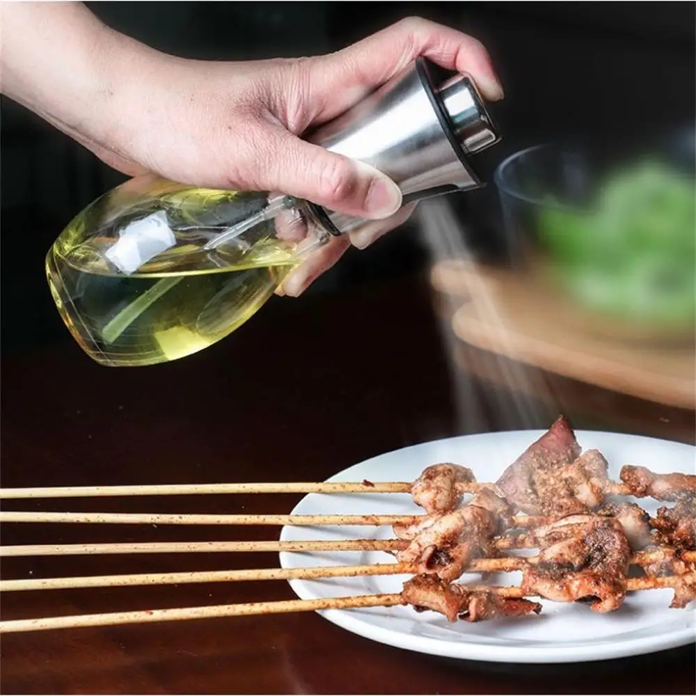 2. 200 мл большой емкости тела стеклянной бутылки может распылить тонкий и даже масляный туман, просто нажав на насос давления. Удовольствие от приготовления пищи, количество приправ (уксус/Соус/масло) можно точно контролировать