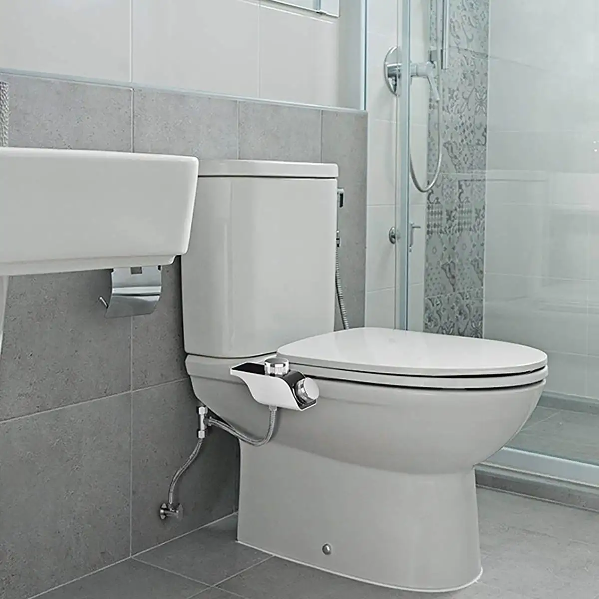 -Неэлектрический спрей для биде с насадкой легко прикрепляется и отсоединяется от любой стандартной унитаза из двух частей.