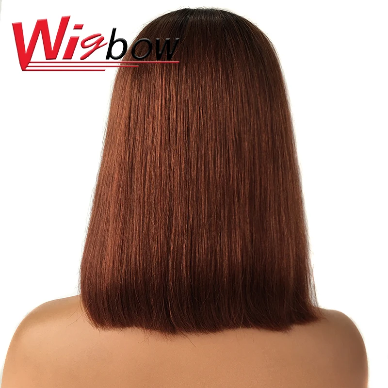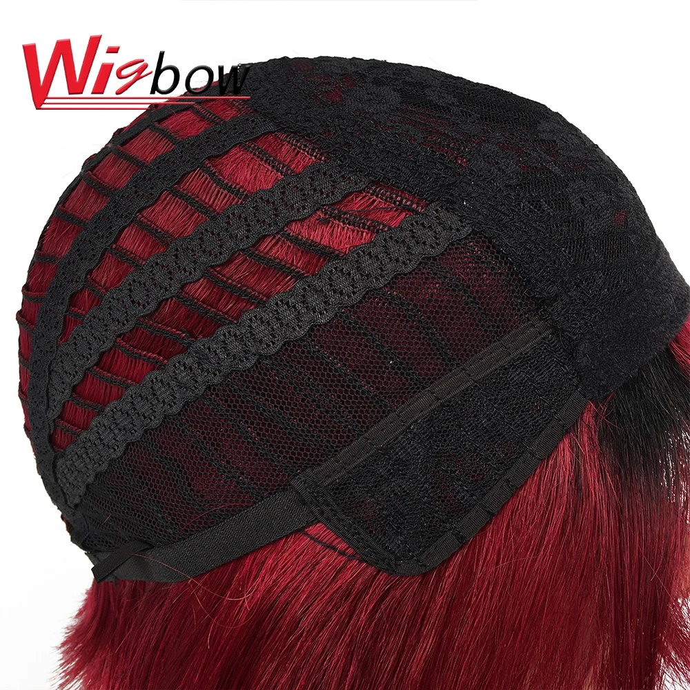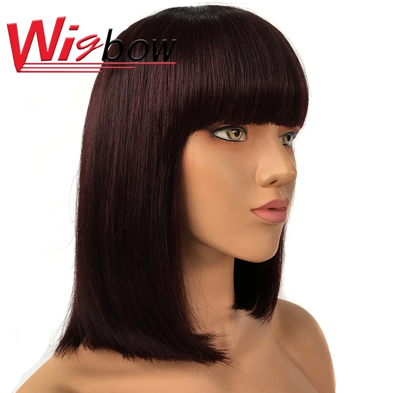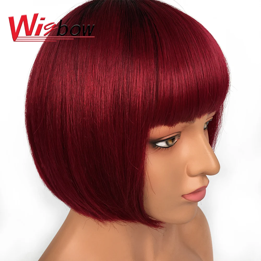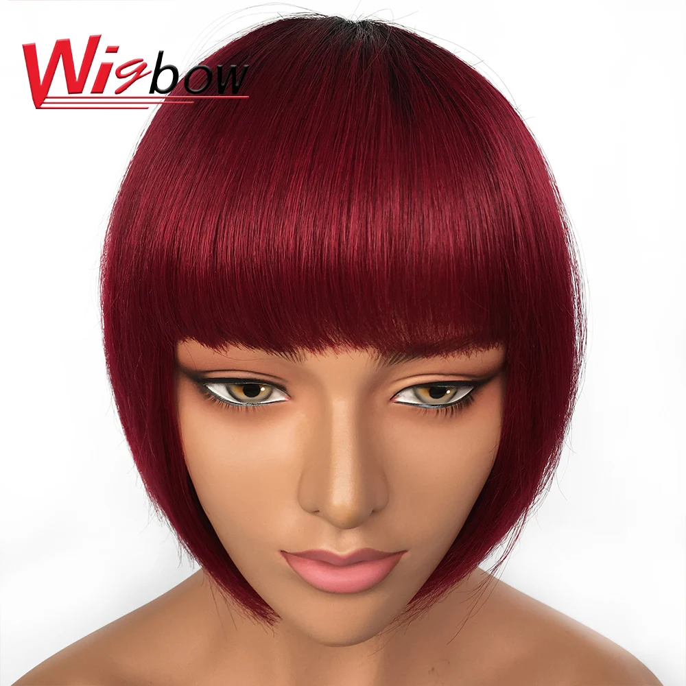 Парик из перуанских волос с Омбре, парики из красных светлых человеческих волос с челкой, прямые короткие человеческие волосы, парики для женщин, машинное изготовление