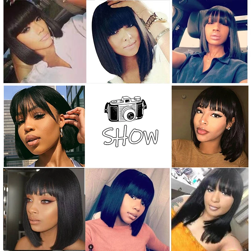 Парик прямой Боб, дешевые парики из человеческих волос с челкой для...